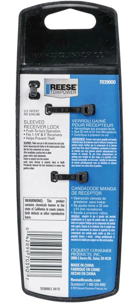 - REESE Towpower Class I-IV Black Nickel Receiver Lock allows you to secure your trailer while you’re away