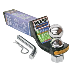 - Includes a ball mount with pre-torqued hitch ball, and a pin and clip