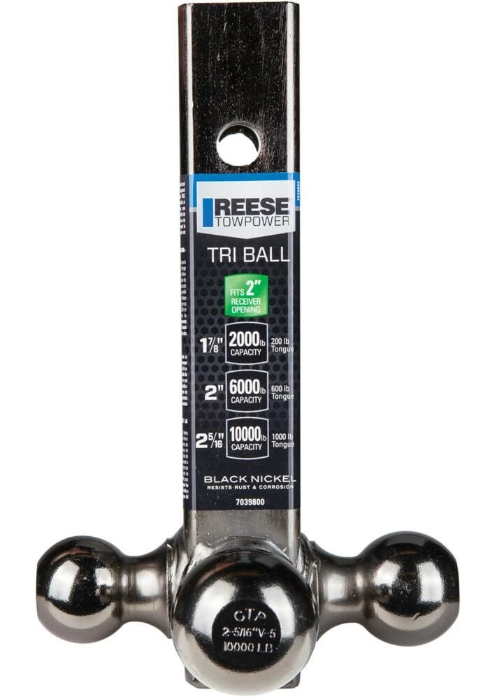 - REESE Towpower Elite Black Nickel Triple Ball Mount fits 2″ square receiver openings