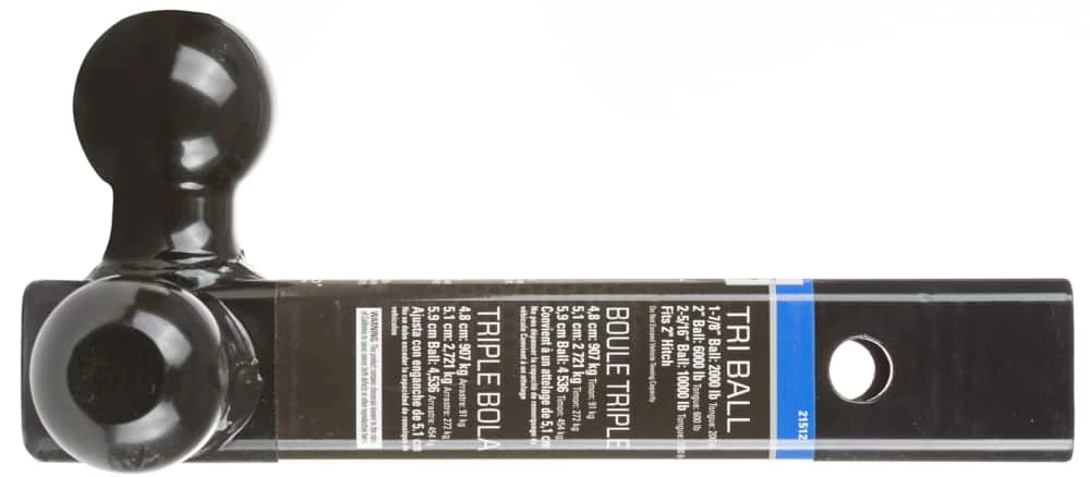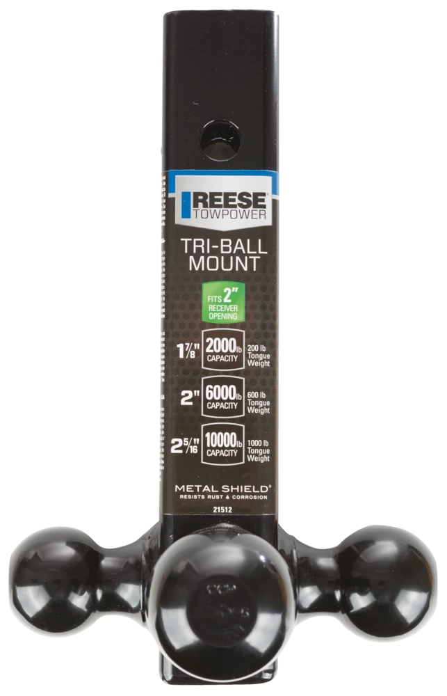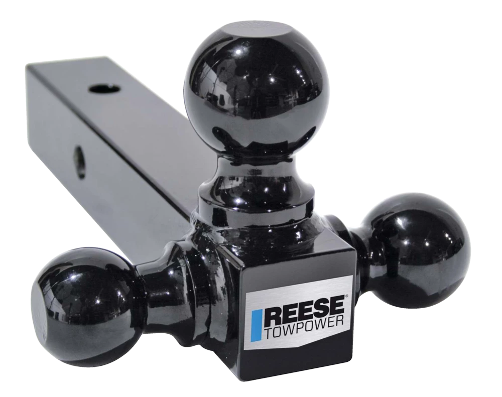 - Reese Towpower Tri Ball Trailer Hitch Ball Mount features a 2 x 2″ (5 x 5 cm) receiver with integrated 1-7/8″, 2″ and 2-5/16″ (4.7, 5, 5.8 cm) hitch balls