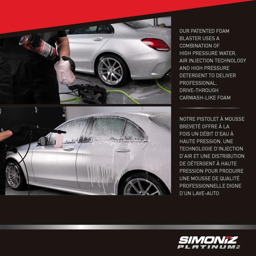 - The patented foam blaster uses a combination of high pressure water, air injection technology and high pressure detergent to deliver professional, drive-through carwash-like foam