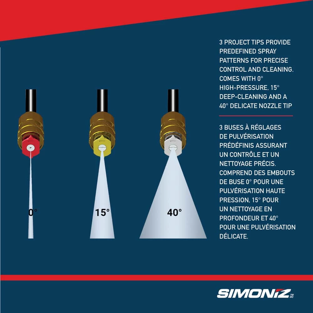 - Nozzles Included: 0 Degree, 15 Degree, 40 Degree