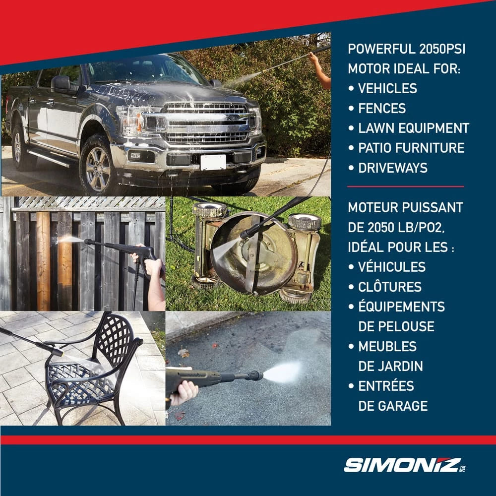 - SIMONIZ 2050 PSI Electric Pressure Washer is engineered to make your outdoor cleaning easier