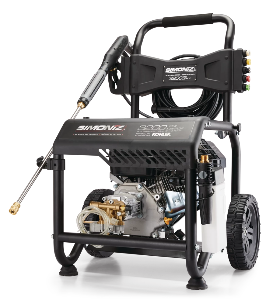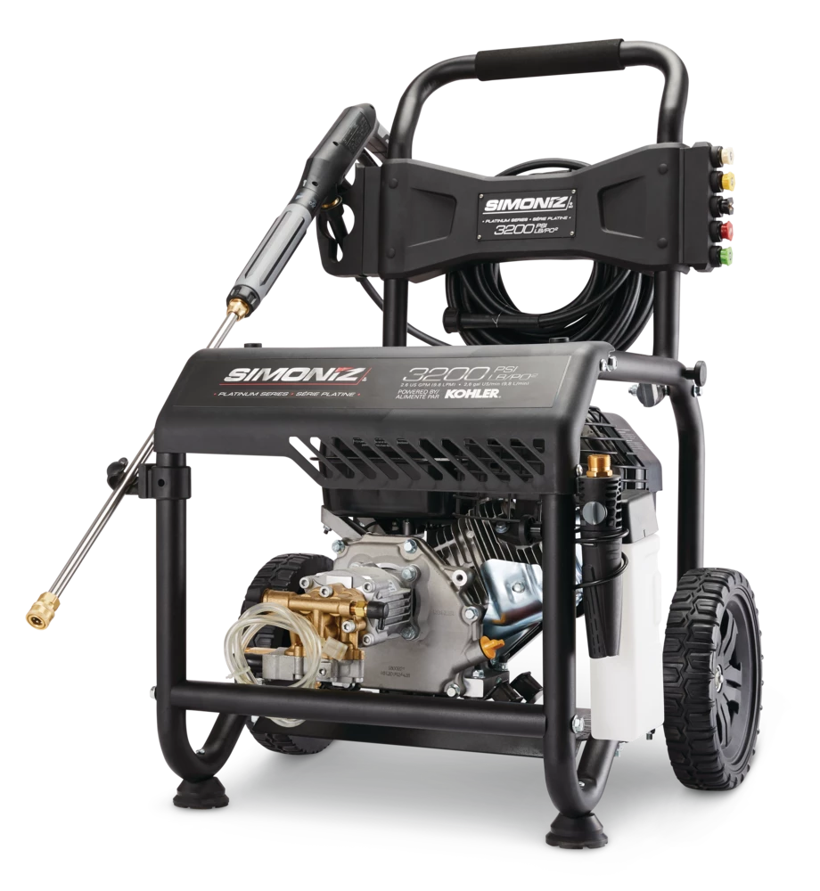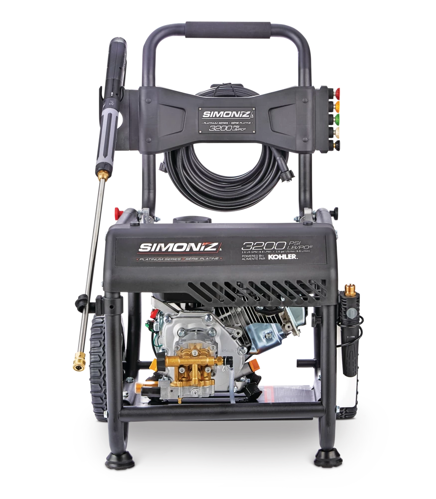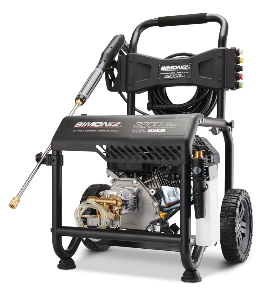 - Simoniz Platinum Heavy-Duty 3200 PSI Gas Pressure Washer with 2.6 GPM features a 4-stroke KohlerSH Series 196CC engine