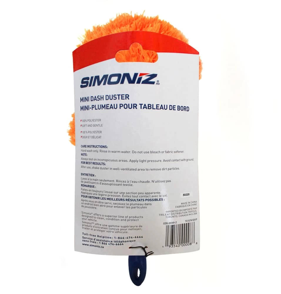 - SIMONIZ Mini Dash Duster features microfibers that are designed to lift dirt while protecting surfaces