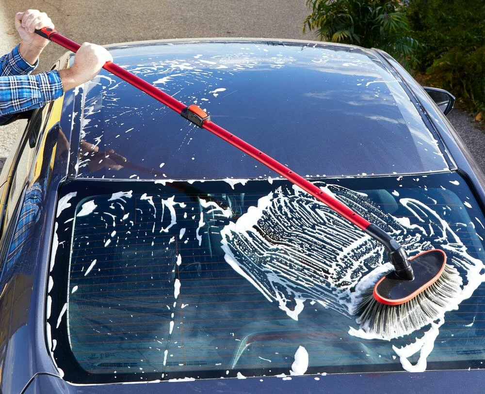 - Included telescoping car wash brush has soft yet powerful wash brush bristles, as well as a pole that extends 53″ (134.6 cm) for added versatility