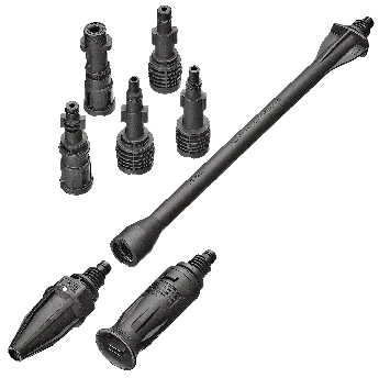 - Includes wand, turbo nozzle, fan spray nozzle and five adapters
