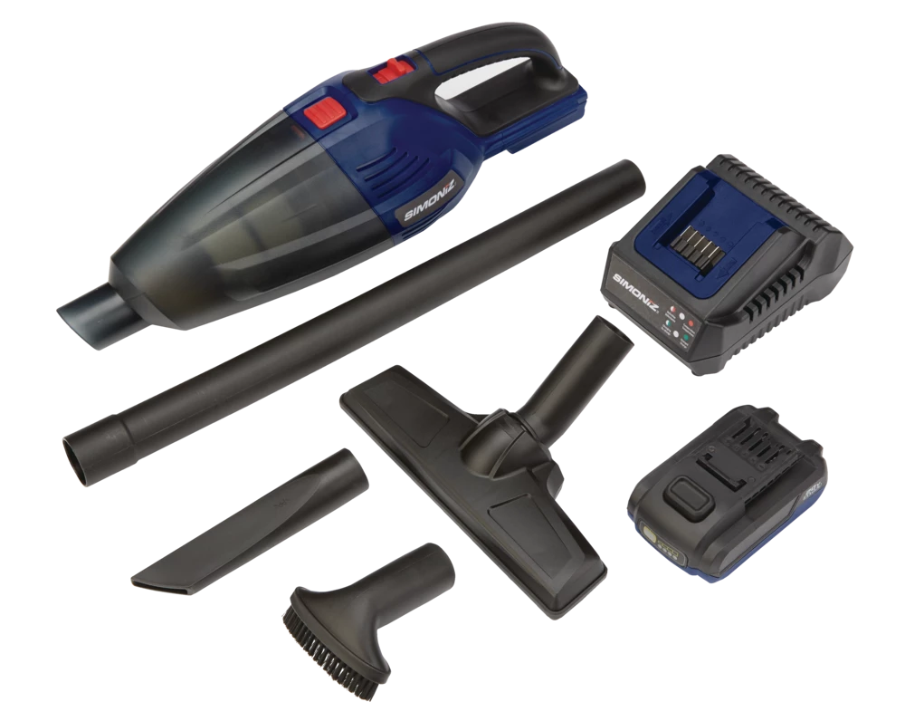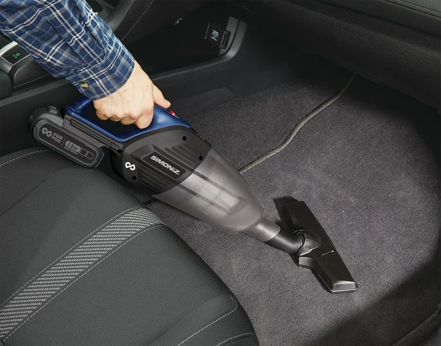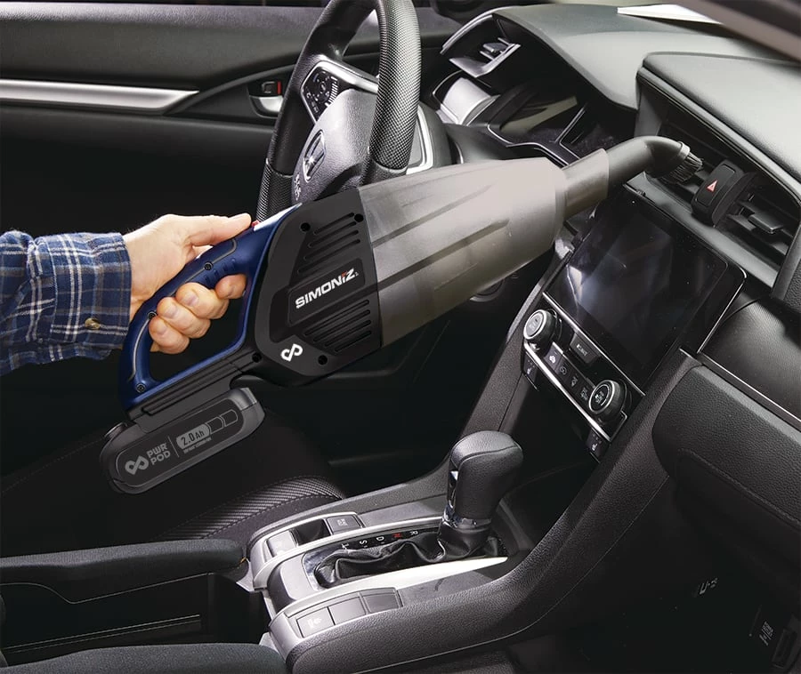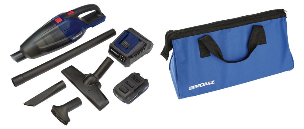 - SIMONIZ Cordless Vacuum features strong suction and a double filter design that is ideal for picking up dirt and debris left behind after your project