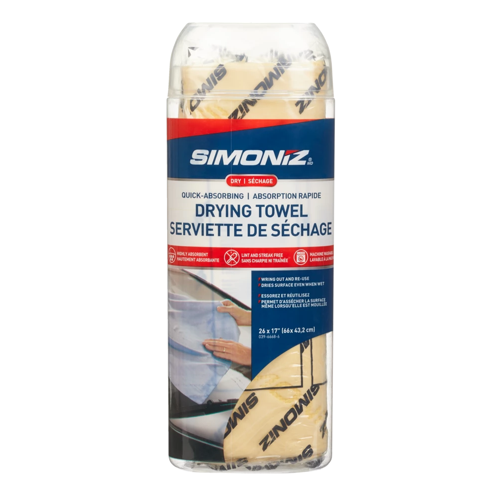 - SIMONIZ Drying Towel absorbs 5 times its weight in water