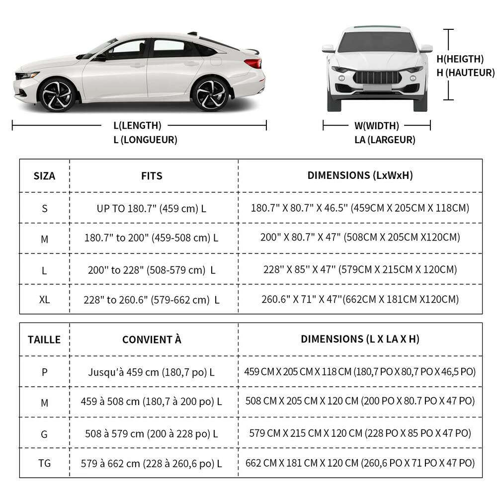 - X-Large (041-2688) fits vehicles 19′ to 22′ (579-670 cm) in length
