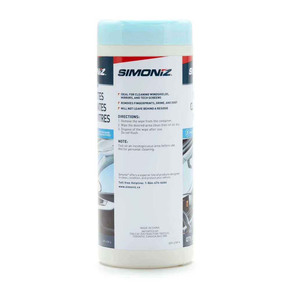 - SIMONIZ Glass Wipes is an all-in-one product that builds a glass cleaning solution into a convenient wipe