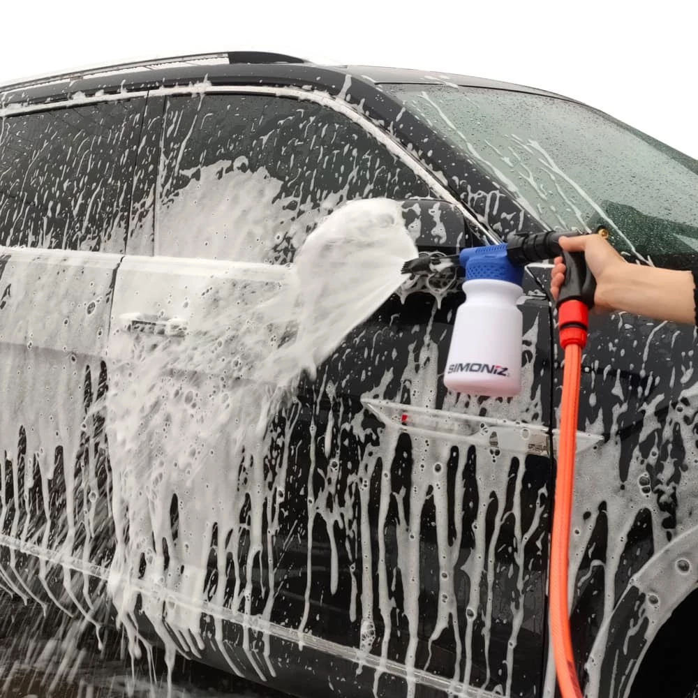 - SIMONIZ Foam Gun quickly and easily blankets vehicle in foam with a quick and easy connection to a standard garden hose
