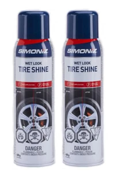 - Simoniz Tire Shine Aerosol Kit contains two wet tire shine aerosols
